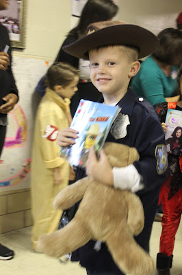 The classes paraded around the school with their costumes and books. Maggie loved spotting all her favorite characters, and I love that Tuttle picked his all-time favorite book to represent!